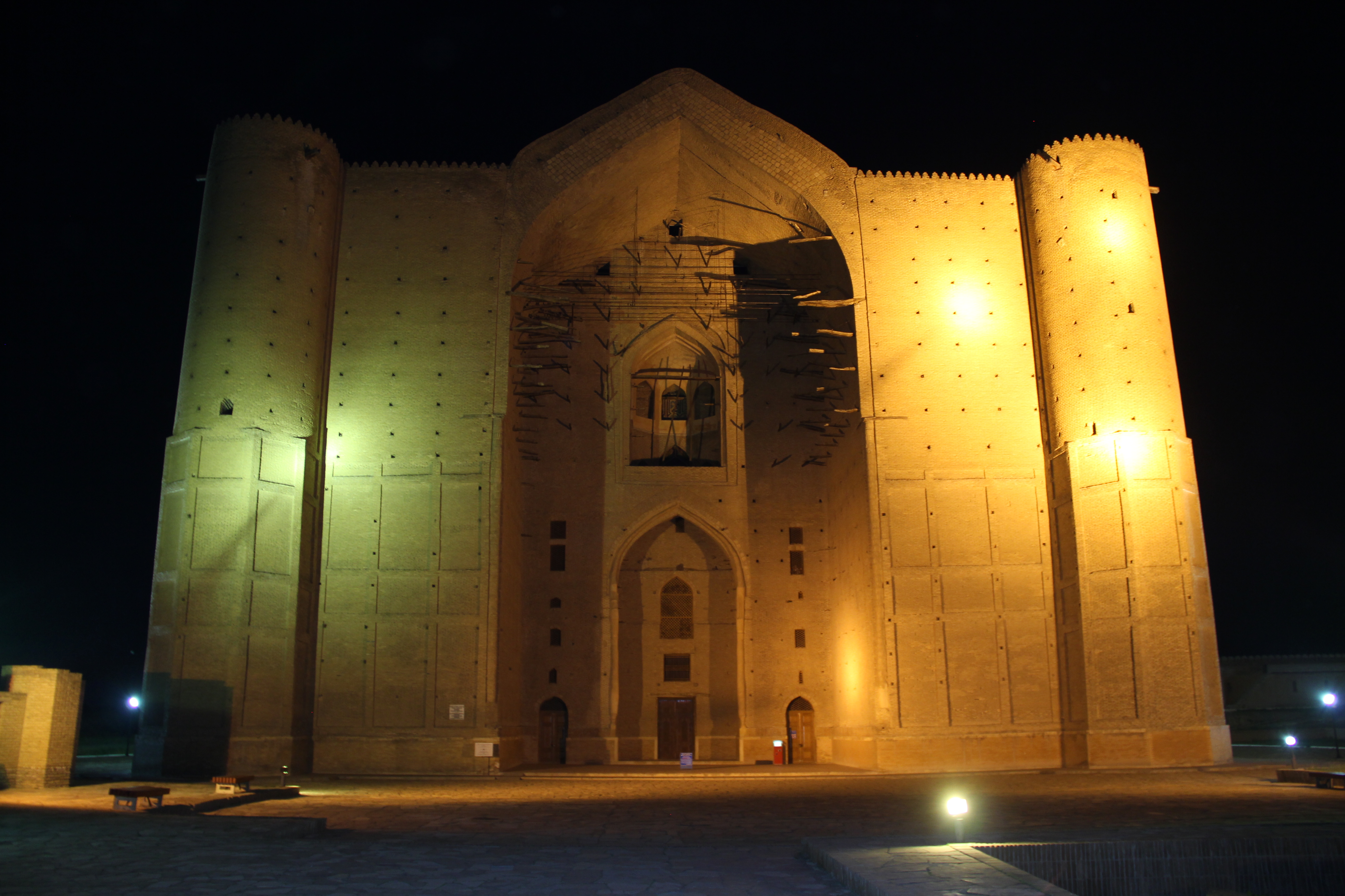 К вечеру прибываем в место Арстанбап. По преданию Арстан Баба – учитель Ходжа Ахмеда. Есть красивая легенда – опять-таки связанная с восточной традицией почитания старших, учителей. Она гласит, что строительство мавзолея Ходжи Ахмеда никак не могло завершиться – буря постоянно сносила постройку. И тогда эмиру Тимуру (великому полководцу Тамерлану) во сне явился мудрец и поведал, что пока не будет заново построен мавзолей Арстан Бабы, разрушенный в ходе осады города, не будет и дороги к строительству самого мавзолея Ходжи Ахмеда. Мавзолей был отстроен, но с тех пор не раз разрушался и отстраивался вновь – в XV в., XVIIIв., в начале XXв. Последний раз его построили в 70х года прошлого века.