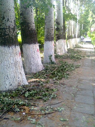 В Бишкеке на Тыныстанова – Московской спилили ветки деревьев и оставили на тротуаре, сообщает читатель.