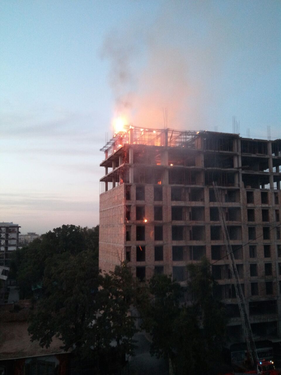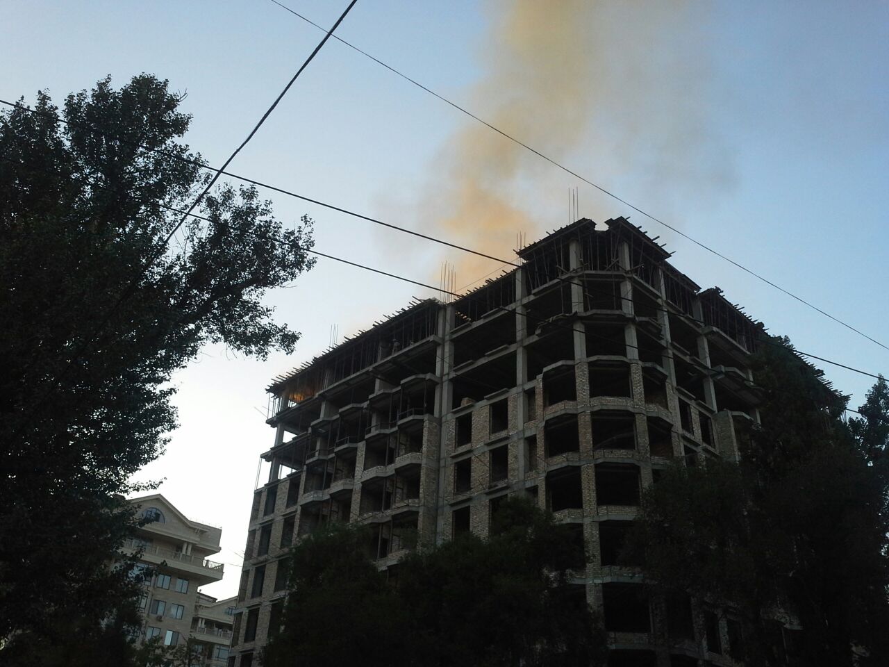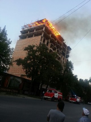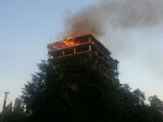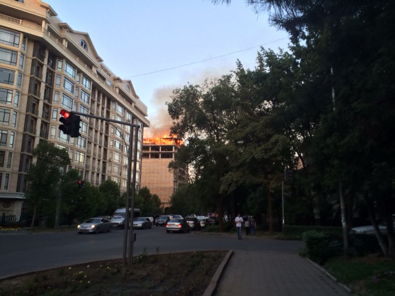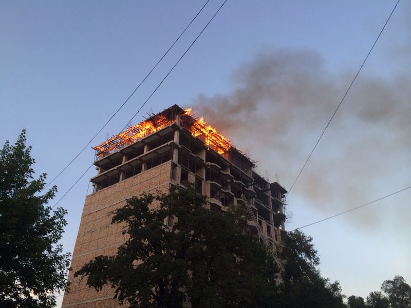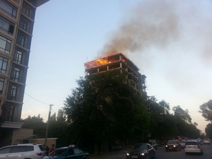Загорелось строящееся многоэтажное здание «Руби Резиденс» по улице Боконбаева (фото, видео обновлено)
