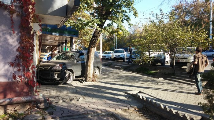 Читатель через мобильное приложение сообщает, что сегодня, 16 октября, около 16:30 на улице Ахунбаева (пересекает Тыныстанова) автомобиль «Хонда CRV» вылетел на тротуар и врезался в магазин «Русские пироги».
