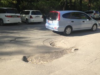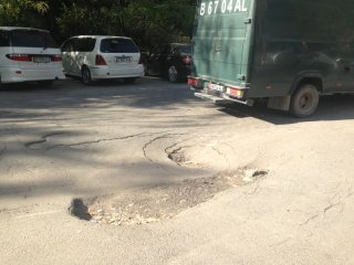 Читатель сообщает, что а улице Уметалиева обваливается участок асфальта площадью в 1 кв.м..