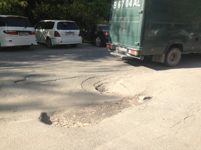 В ходе ямочного ремонта по ул.Уметалиева заделали мелкие ямы, а крупные проигнорировали (фото)