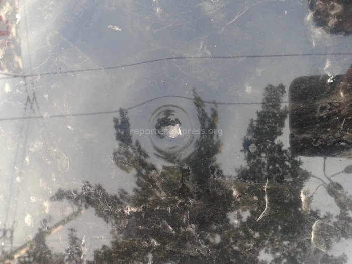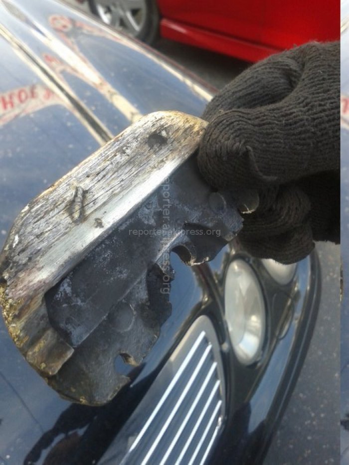«Где-то месяц назад с этого троллейбуса на Абдрахманова-Чуй на мою машину сверху упал этот кусок металла. Я спешил, а водитель жаловался, что ему и так тяжело и техника уже старая. Я уехал. Эта тяжелая вещь может упасть ина человека, будьте осторожны», - написал читатель через мобильное приложение «Репортер».