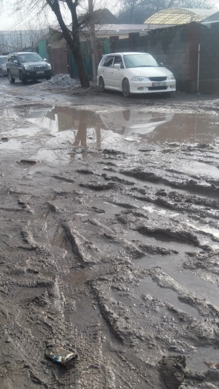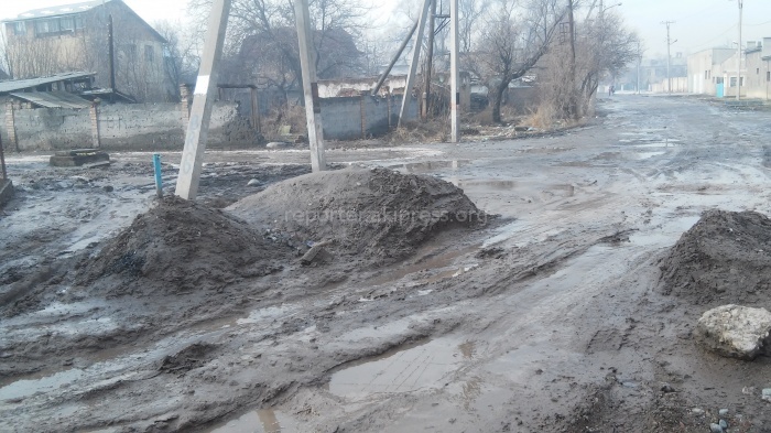 «На пересечении улиц Матыева и Барнаульская должны были построить дорогу, водители самосвалов выгрузили на дорогу 3 машины грунта, из-за дождей работы приостановили и весь выгруженный грунт превратился в грязь. Теперь невозможно проехать по дороге, жители не знают кто выгружал этот грунт. Просим власти помочь нам».