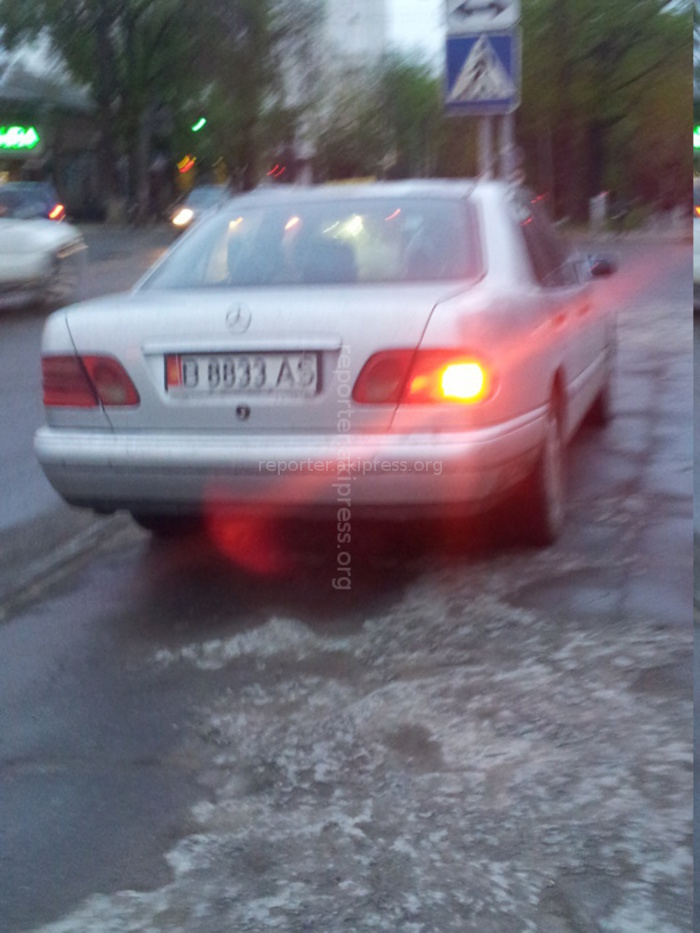 «Этот человек каждый день паркуется на тротуаре возле чайханы по улице Турусбекова, при этом создавая неудобства для пешеходов. Кроме того, если кто-то прикроет заезд к этому тротуару он нецензурно выражается и долго сигналит, после чего заезжает как к себе домой. Мы живем на против этого «Ресто» и нам очень не приятно. Утверждает что весь тротуар его, якобы он сделал, и всех называет ворами. ДПС просим принять меры! В приложении видео», - житель.