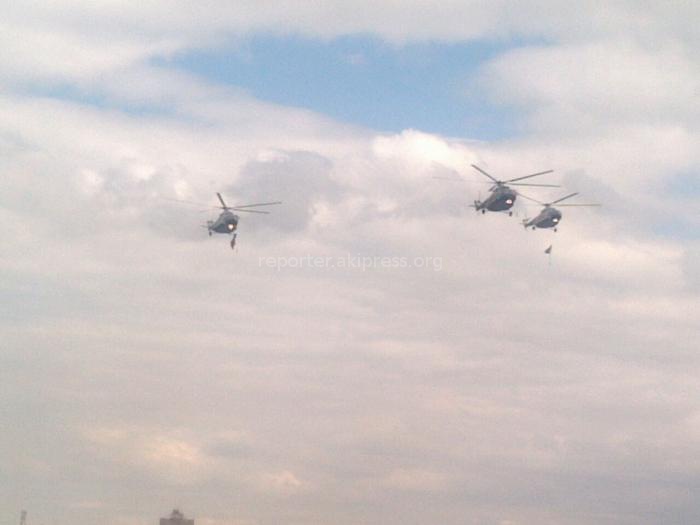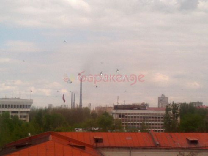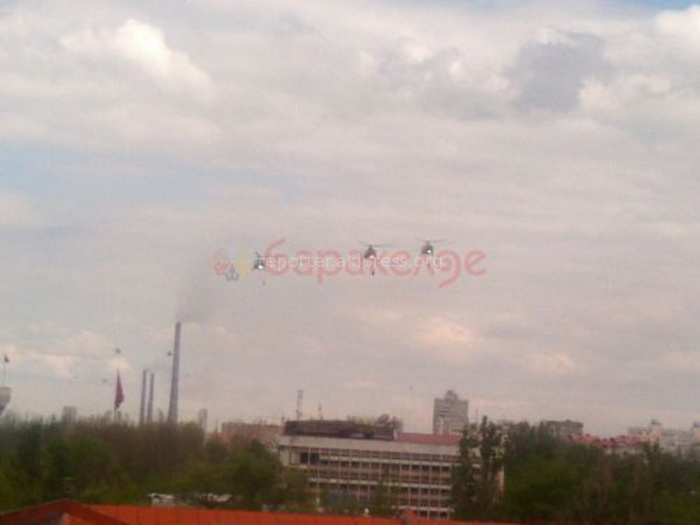 «27 апреля около 15:40 над городом, в том числе площадью Ала-Тоо проходили репетиции парада ко Дню Победы.»