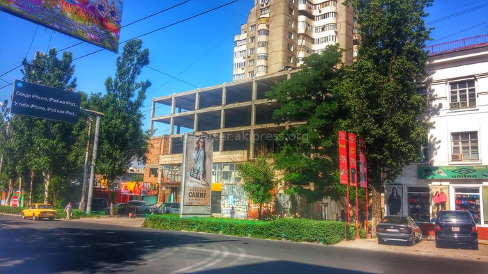 «Вопрос к мэрии. Центр города, пересечение Киевская-Абдрахманова (Советская). Фасады домов ободраны до безобразия, например 12-этажка «ТриО» на остановке.