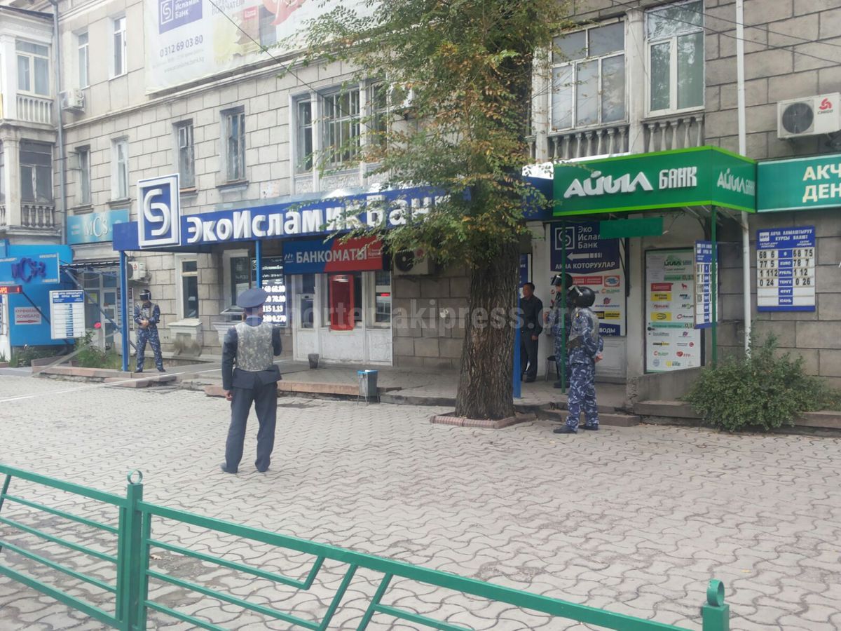 На пересечении улиц Абрахманова-Боконбаева оцеплено здание «Экоисламикбанк», сообщает читатель.
