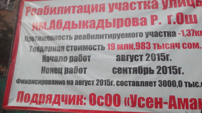 Дорогу по улице Абдыкадырова должны были сдать в эксплуатацию в сентябре, но сейчас там ничего не делается, - читатель (фото) 13 окт. 2015, 09:07 452 В городе Ош идет реабилитации дороги по улице Абдыкадырова, но последние 3 недели там ничего не делают, сообщил горожанин. По его словам, по срокам дорогу должны были сдать в эксплуатацию в сентябре 2015 года. Когда ее доделают, спрашивает читатель. 15 Есть новость? Сообщи нам по номеру 0550 01 03 11 или через приложение «Репортер АКИpress»! -Поделиться-Твиттер-WhatsApp- Телеграм 452 Просмотры Читайте Репортер в t.me/ReporterAKIpress