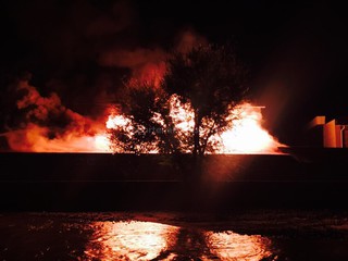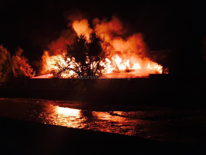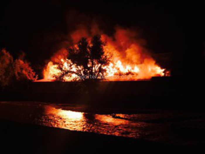 По их словам, пожар начался примерно в 19:30, на место прибыла пожарная машина.