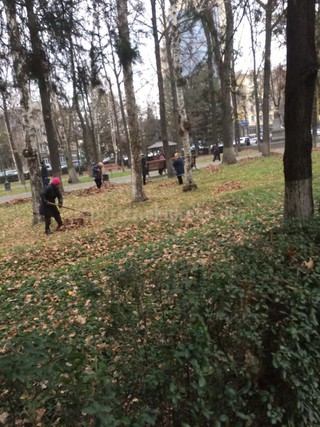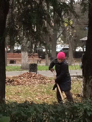 «Почему уборкой листьев на бульваре Эркиндик (Дзержинского) занимаются женщины?