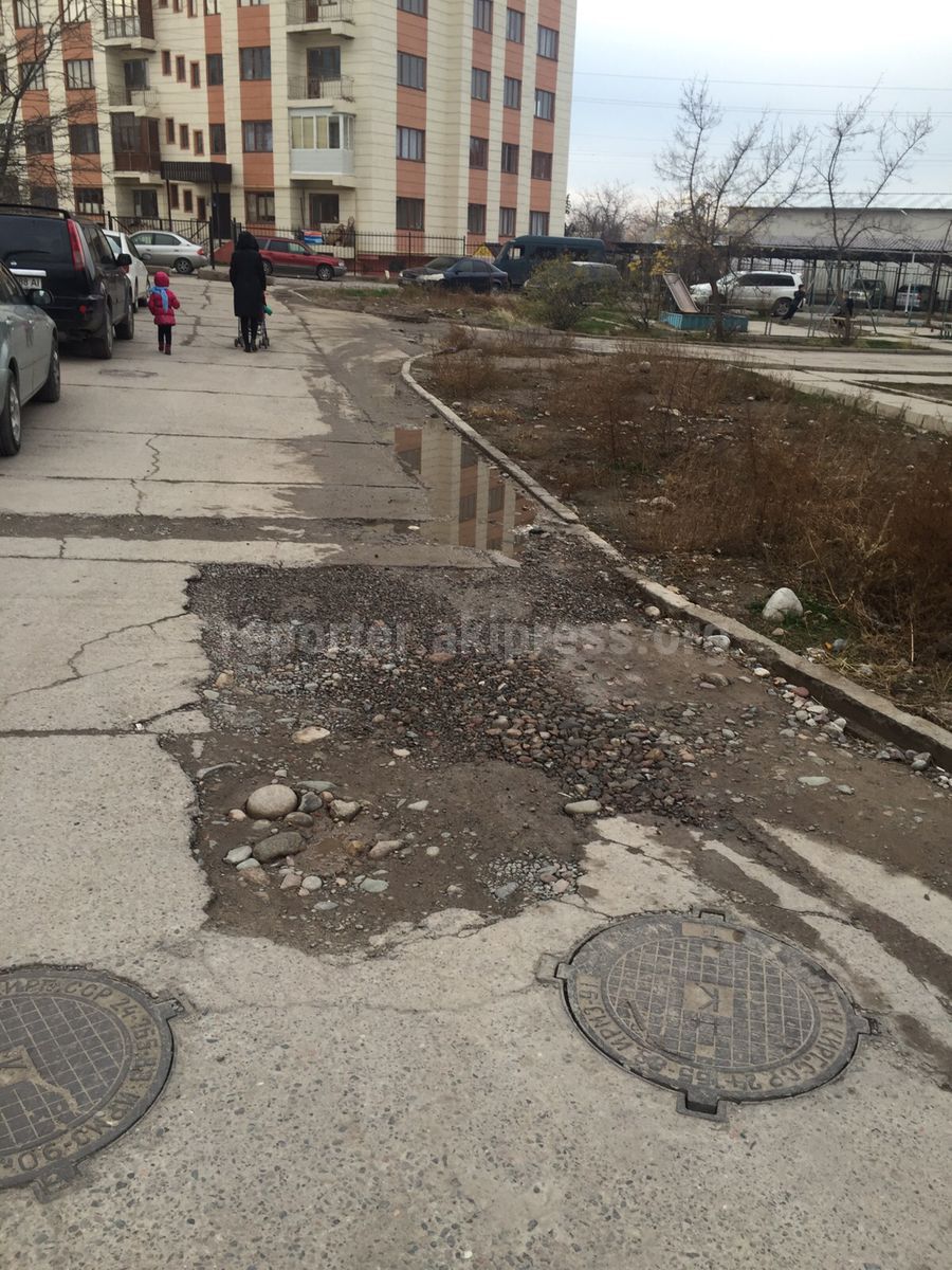 «В микрорайоне Джал (верхняя часть) строительная компания не восстановила дорогу по улице Роторная после подведения коммуникационных сетей к своему объекту».