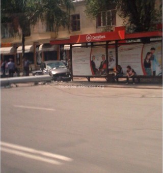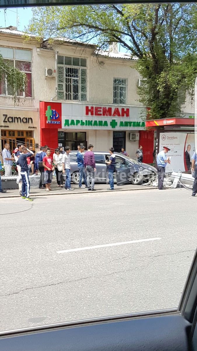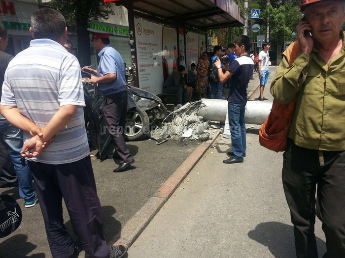 Автомашина 18 июня на большой скорости влетела в остановку, расположенную на пересечении улиц Манаса-Боконбаева, сообщил очевидец.