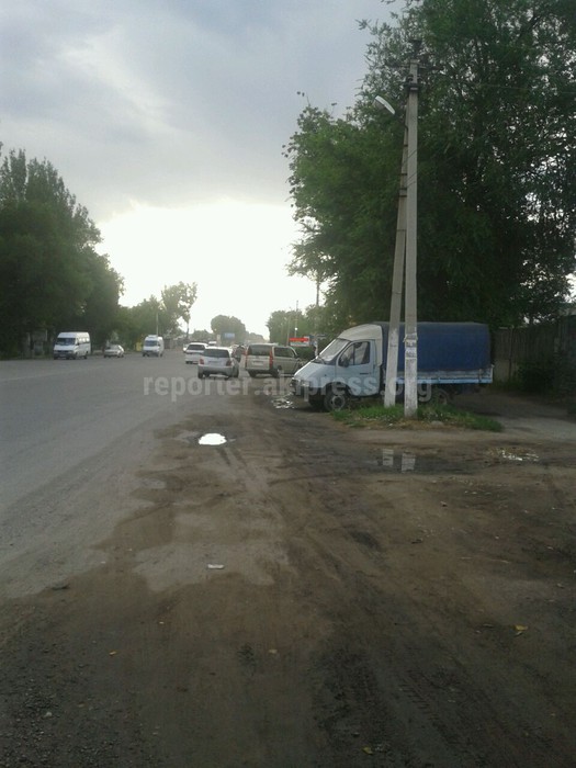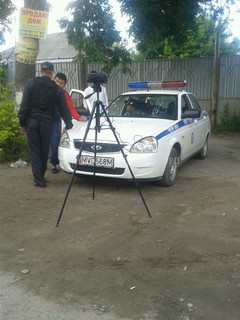 «Сотрудники Патрульной милиции по прежнему прячутся в кустах. Даннавтомашина ПМ спряталась за грузовым авто в селе Военно-Антоновка на пересечении улиц Фрунзе-Пограничная.