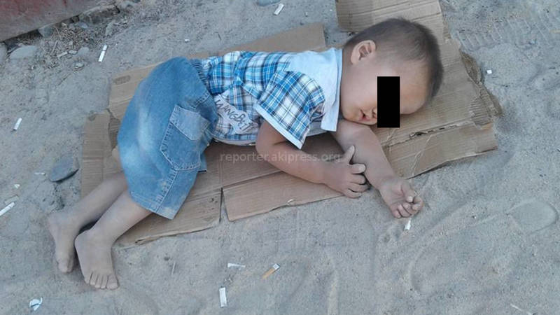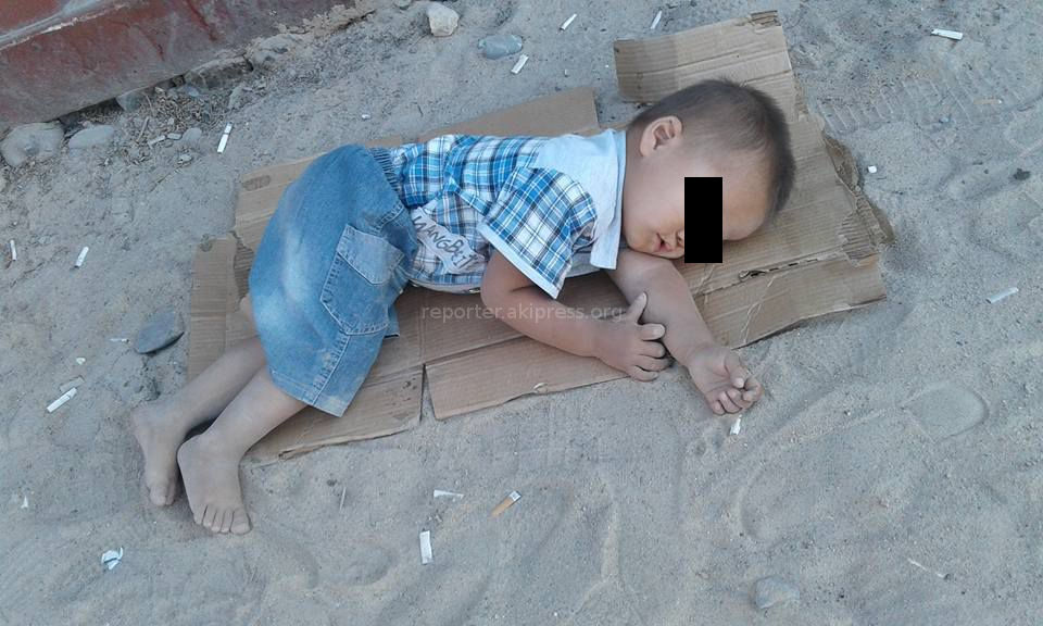 По сообщениям, оставленным под фотографией, ребенок спит на территории рынка «Оомат» в городе Кара-Суу Ошской области.