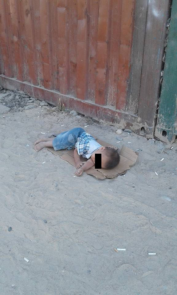 В социальных сетях обсуждают фото ребенка, спящего на земле.