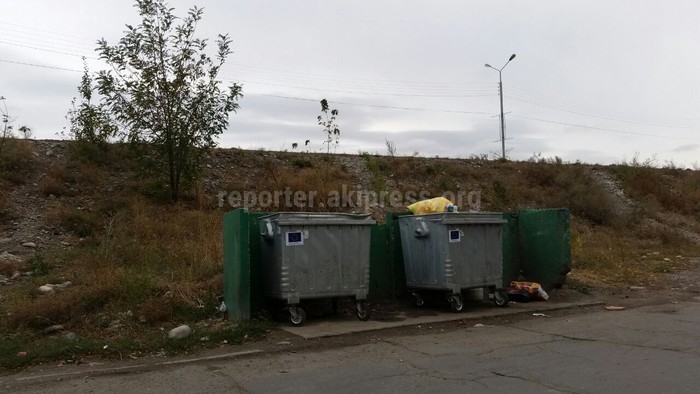 Читатель интересуется, когда сделают металлическую конструкцию вокруг мусорных баков в 10 микрорайоне города Бишкек.