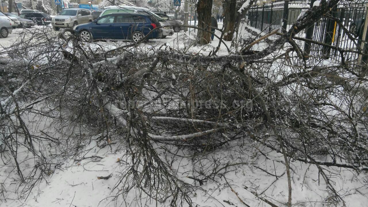 Мэрия города Бишкек касательно сообщения читателей об упавших на тротуары от тяжести снега деревьев и веток, сообщает: