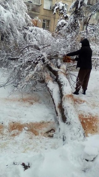 «Как сообщают в МП «Зеленстрой», продолжается работа по уборке сухостойных деревьев, упавших в результате мокрого снега.