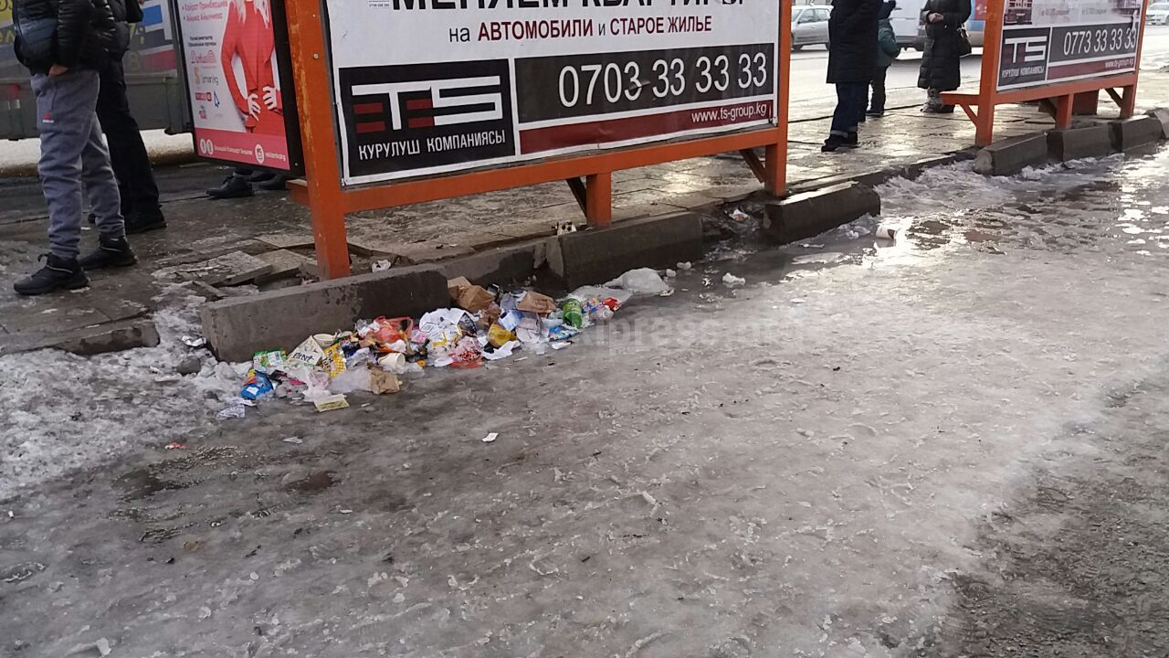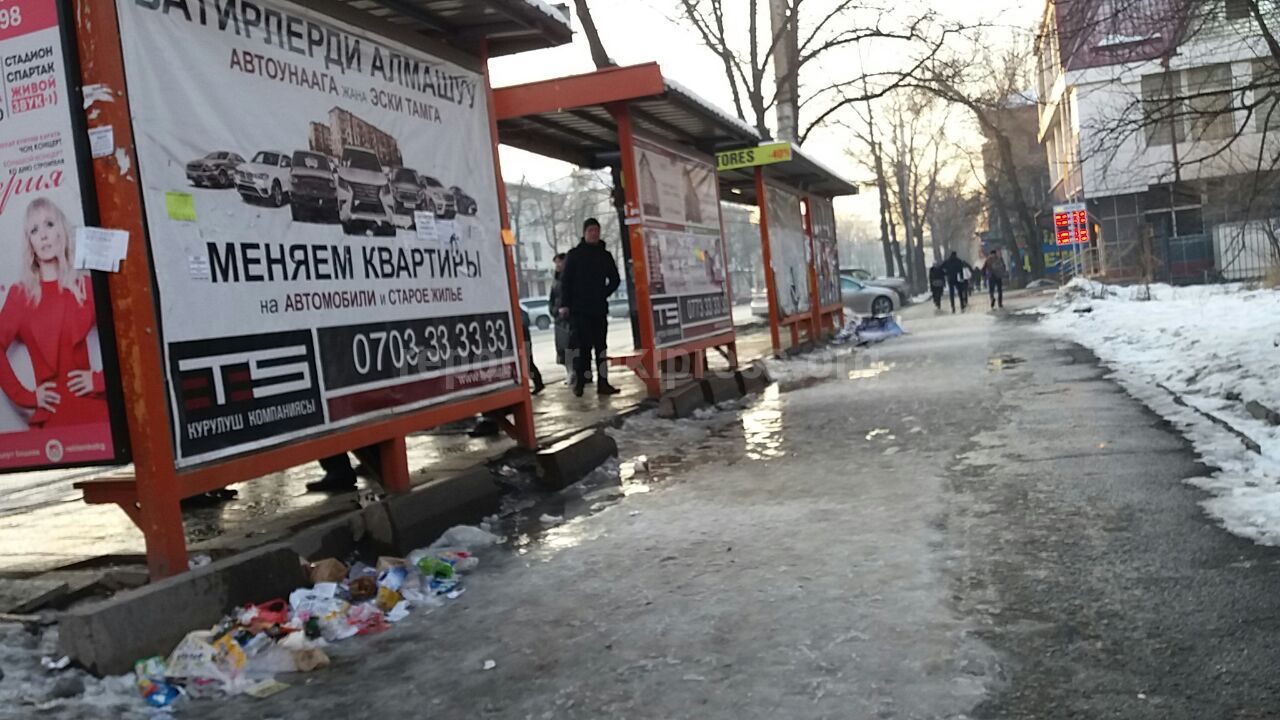На остановке на пересечении улицы Ахунбаева и проспекта Айтматова нет урн для мусора, - читатель (фото)