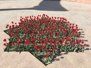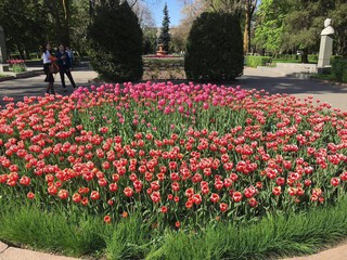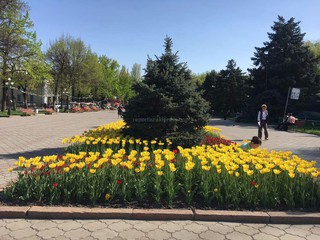 В городе Бишкек у памятника Курманжан Датки зацвели тюльпаны, фотографиями которых поделилась читательница Наргиз.