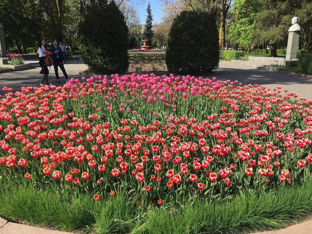 Бишкекчане на выходных кинулись к памятнику посмотреть на цветочные сады и в соцсетях благодарят работников мэрии за красоту.
