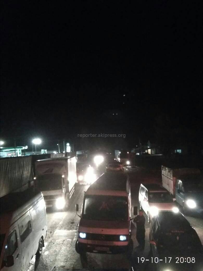 На посту Сосновка в одноименном селе вечером 19 октября временно приостановили движение транспорта на автодороге Бишкек - Ош, сообщили читатели.