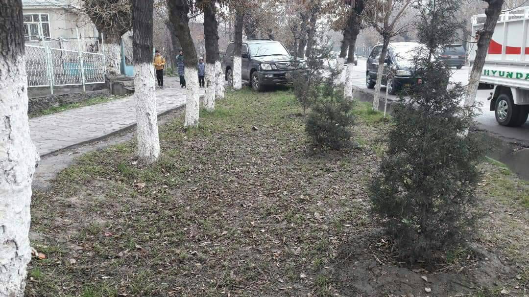 «Ош шаарынын Г.Айтиев көчөсүндө «Lexus LX470» үлгүсүндөгү унаа жөө жүргүнчүлөр жүрүүчү жолдо жана былтыркы жылы шаардык көрктөндүрүү жана жашылдандыруу чарба комбинаты тарабынан отургузулган арчалардын катарына токтоп турат. Унаанын ээсине ким чара көрөт?» - деп сурады окурман.