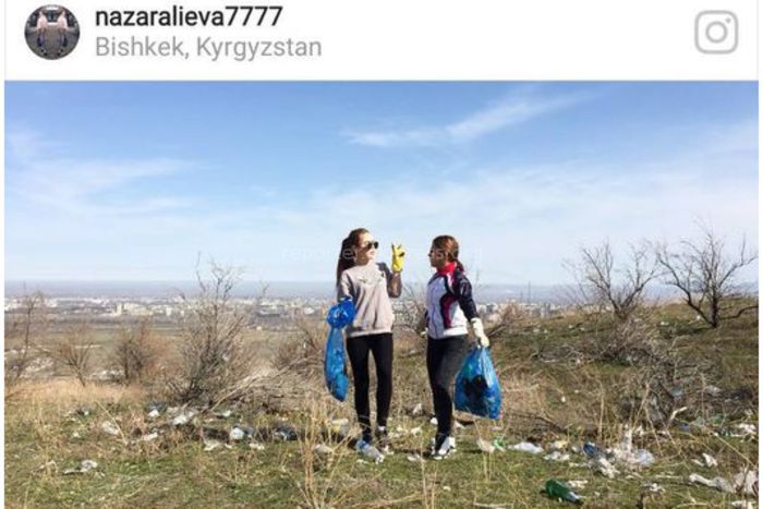 Также 18-летняя Айыма Назаралиева с 2 сестрами убрали территорию на склоне у флага.