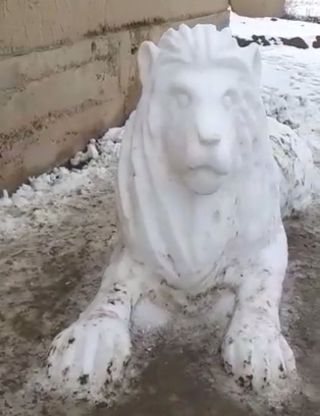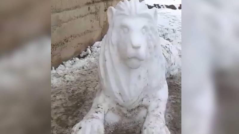Житель села Бакыян Кара-Бууринского района Таласской области создал полноразмерную скульптуру льва из снега. Об этом редакции сообщил его односельчанин.