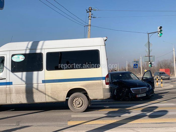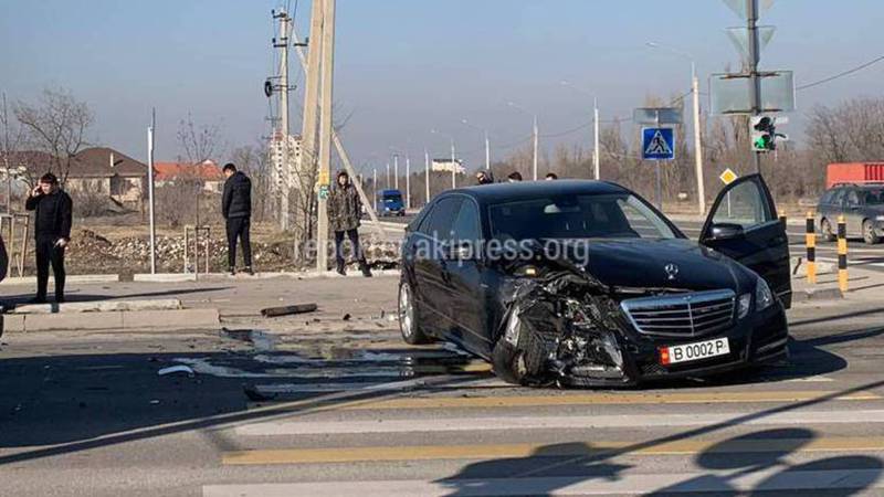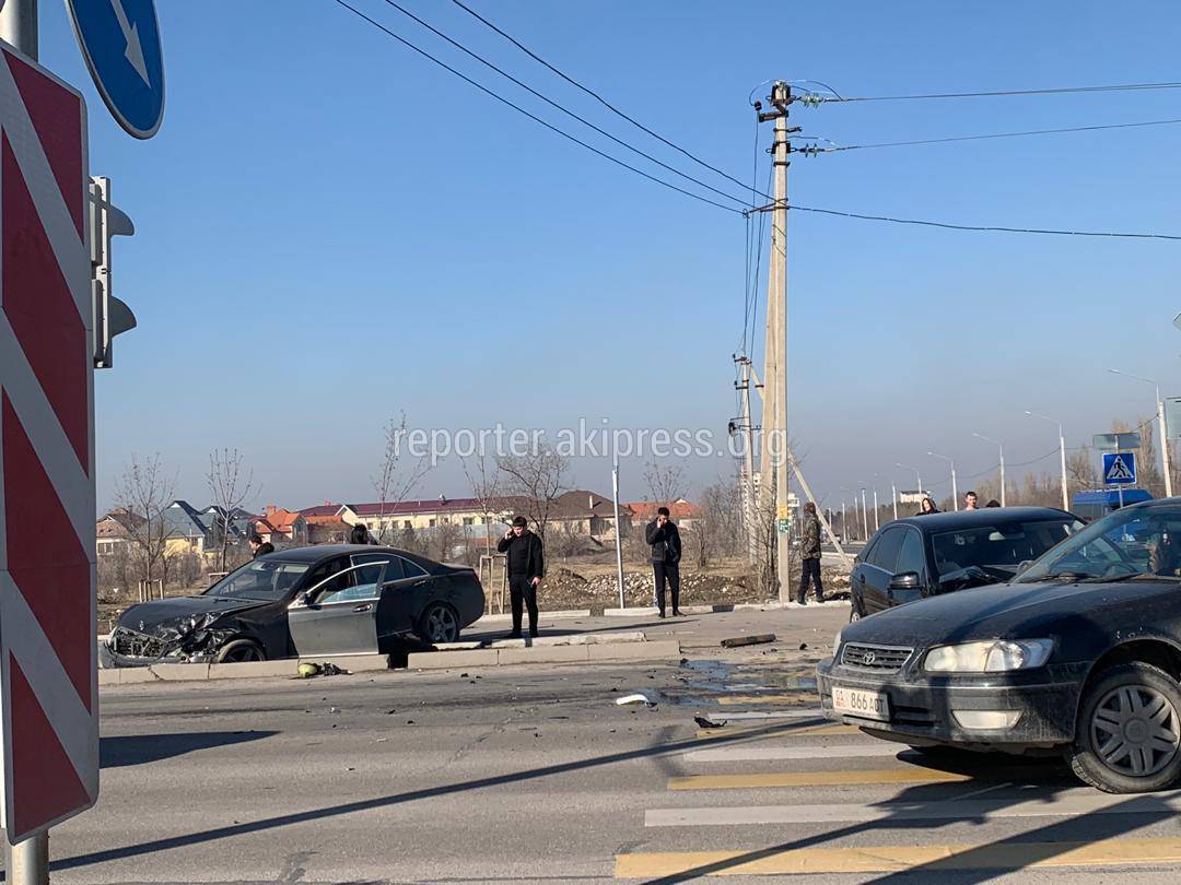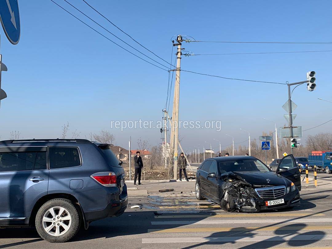 На пересечении Южной магистрали с улицей Токтоналиева произошло ДТП, в которой столкнулись две автомашины марки «Мерседес».