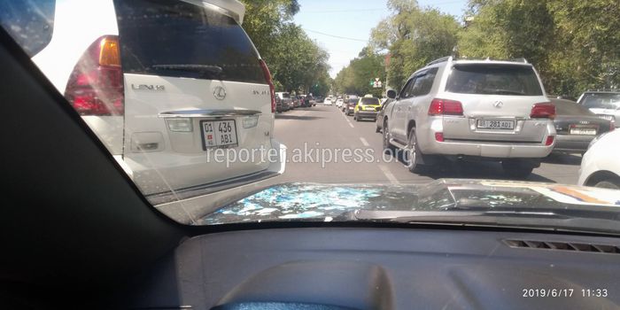 В Бишкеке на улице Токтогула недалеко от улиц Исанова водитель «Лексуса» с госномером 01KG 436 ABI припарковался на проезжей части дороги и создал неудобства другим водителя. Об этом редакции сообщил очевидец.