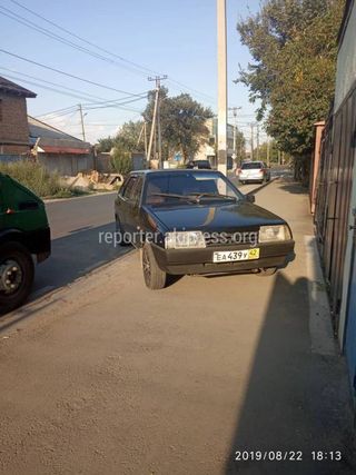 В Бишкеке на пересечении улиц Куренкеева и Керимова водитель «Лады» с российским госномером припарковался на тротуаре. Об этом редакции сообщил очевидец.