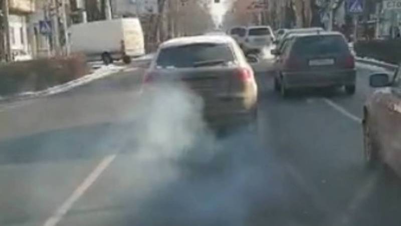 На пересечении улиц Московской и Турусбекова в Бишкеке сильно дымит машина, сообщает очевидец.