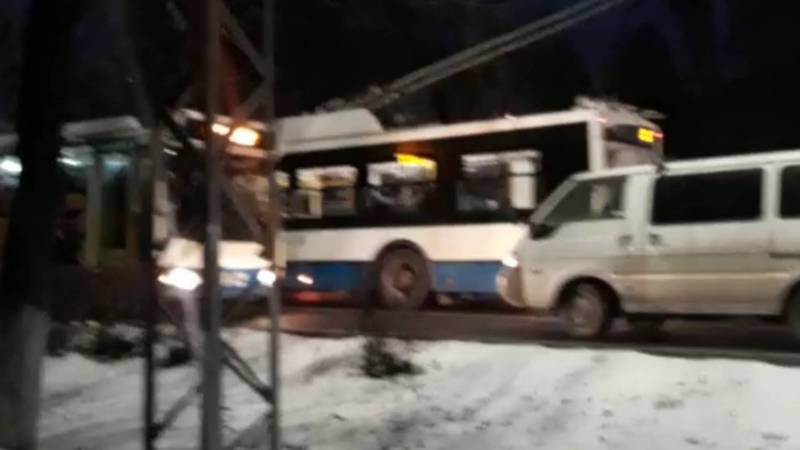 На пересечении проспекта Манаса и улицы Московской машина выехала на встречную полосу и заблокировала линию общественного транспорта. Об этом 15 января сообщил очевидец.