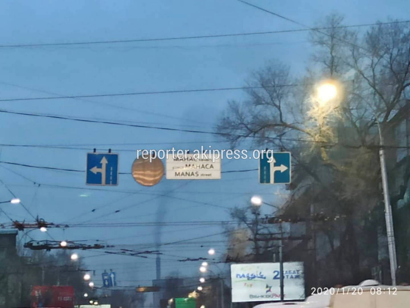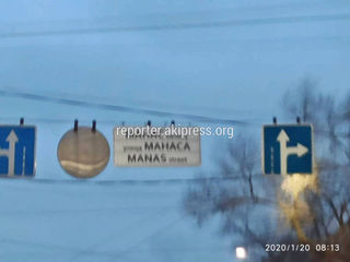 На пересечении проспекта Манаса и улицы Киевской в Бишкеке проспект Манаса на табличке написали как улицу имени Манаса, сообщает очевидец.