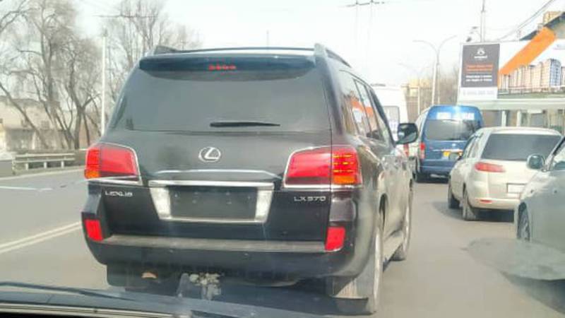 На пересечении проспекта Айтматова и улицы Горького замечена автомашина марки «Лексус» без номерных знаков. Фотографию прислал очевидец.