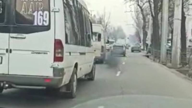 На пересечении улиц Абдрахманова и Токтогула в Бишкеке сильно дымит «Мерседес Спринтер». Видео отправил очевидец.