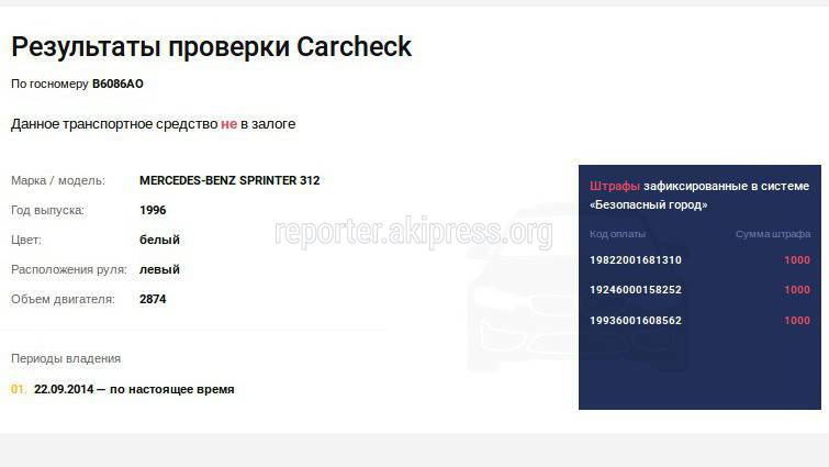На Байтик Баатыра-Суеркулова водитель «Мерседес» выехал на встречную полосу. Фото 10 февр. 2020, 22:15 (обновлено: 11 февр. 2020) 1930 На пересечении улиц Байтик Баатыра и Суеркулова в Бишкеке водитель «Мерседес Спринтер» выехал на встречную полосу, сообщает очевидец. В системе Carcheck за автомобилем с госномером B 6086 AO числятся три штрафа на 3 тыс. сомов. 13 Есть новость? Сообщи нам по номеру 0550 01 03 11 или через приложение «Репортер АКИpress»! -Поделиться-Твиттер-WhatsApp- Телеграм 1930 Просмотры Читайте Репортер в t.me/ReporterAKIpress