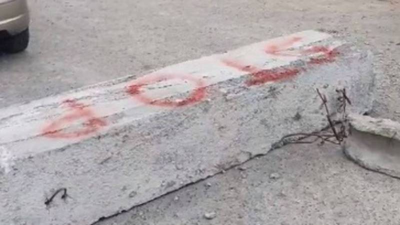 Житель города Ош сообщает о том, что в районе ХБК улицу Салиева закрыли бетонными плитами.
