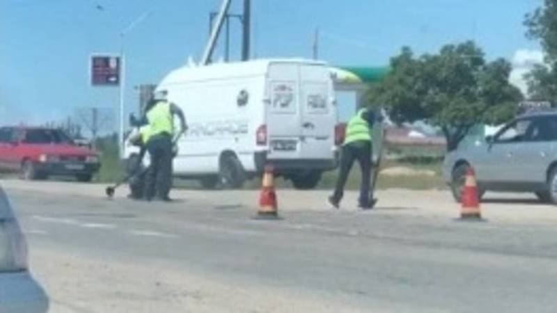 Очевидец поделился видео, на котором видно, как в городе Чолпон-Ата делают ямочный ремонт центральной дороги.